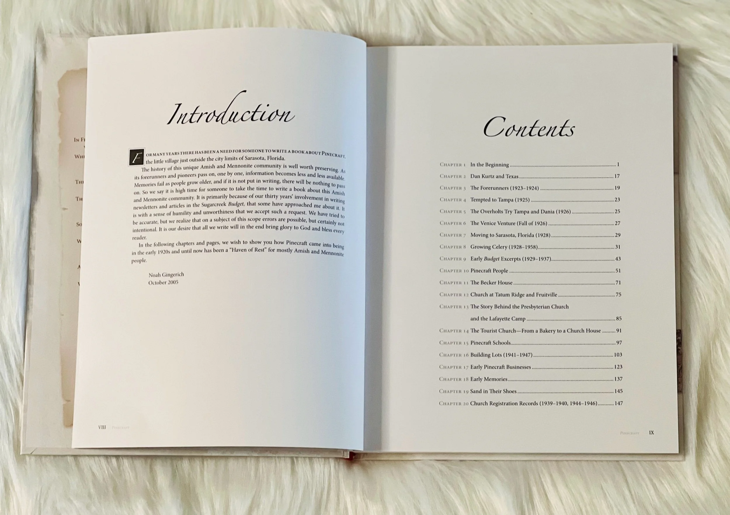 In the following chapters and pages, we wish to show you how Pinecraft came into being in the early 1920s and until now has been a "Haven of Rest" for mostly Amish and Mennonite people. -Noah Gingerich, October 2005